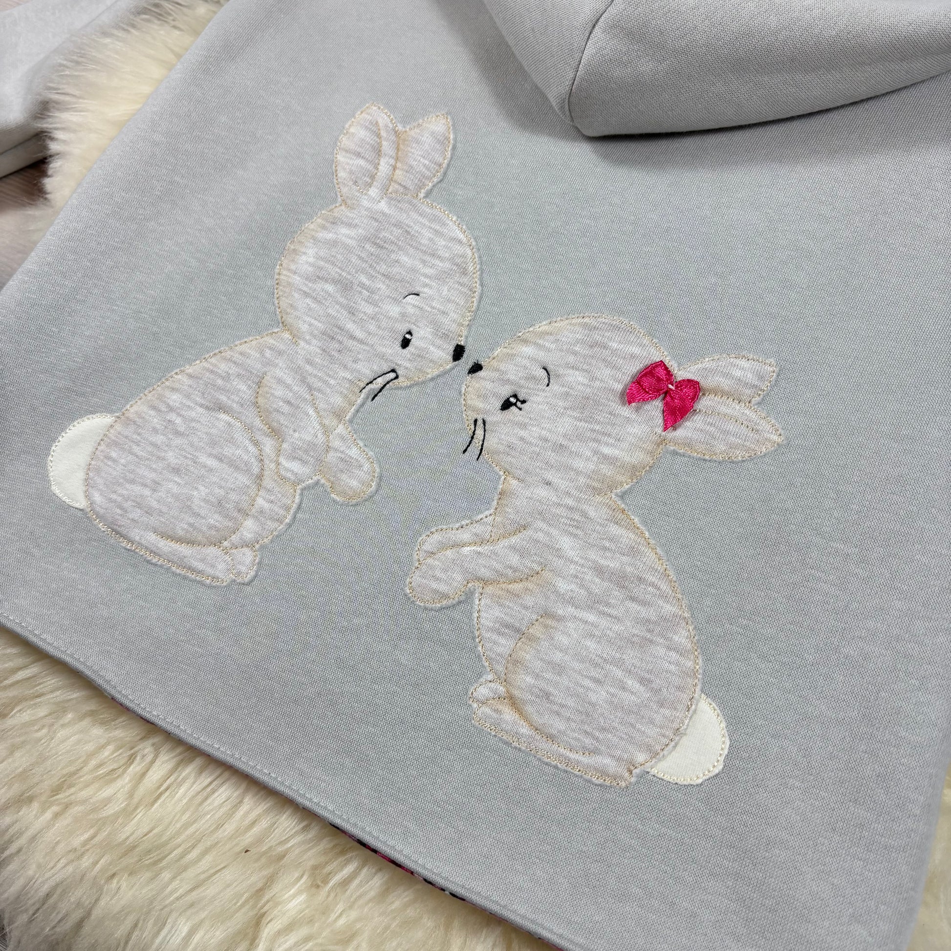 Kuschelige Sweatjacke mit Häschenpaar-Stickerei – perfekt für kleine Tierfreunde!